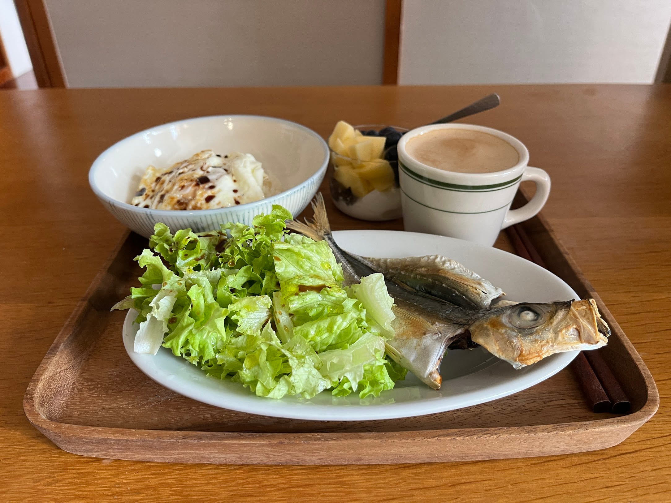 竹莢魚做成一夜干,是隔天的早餐。