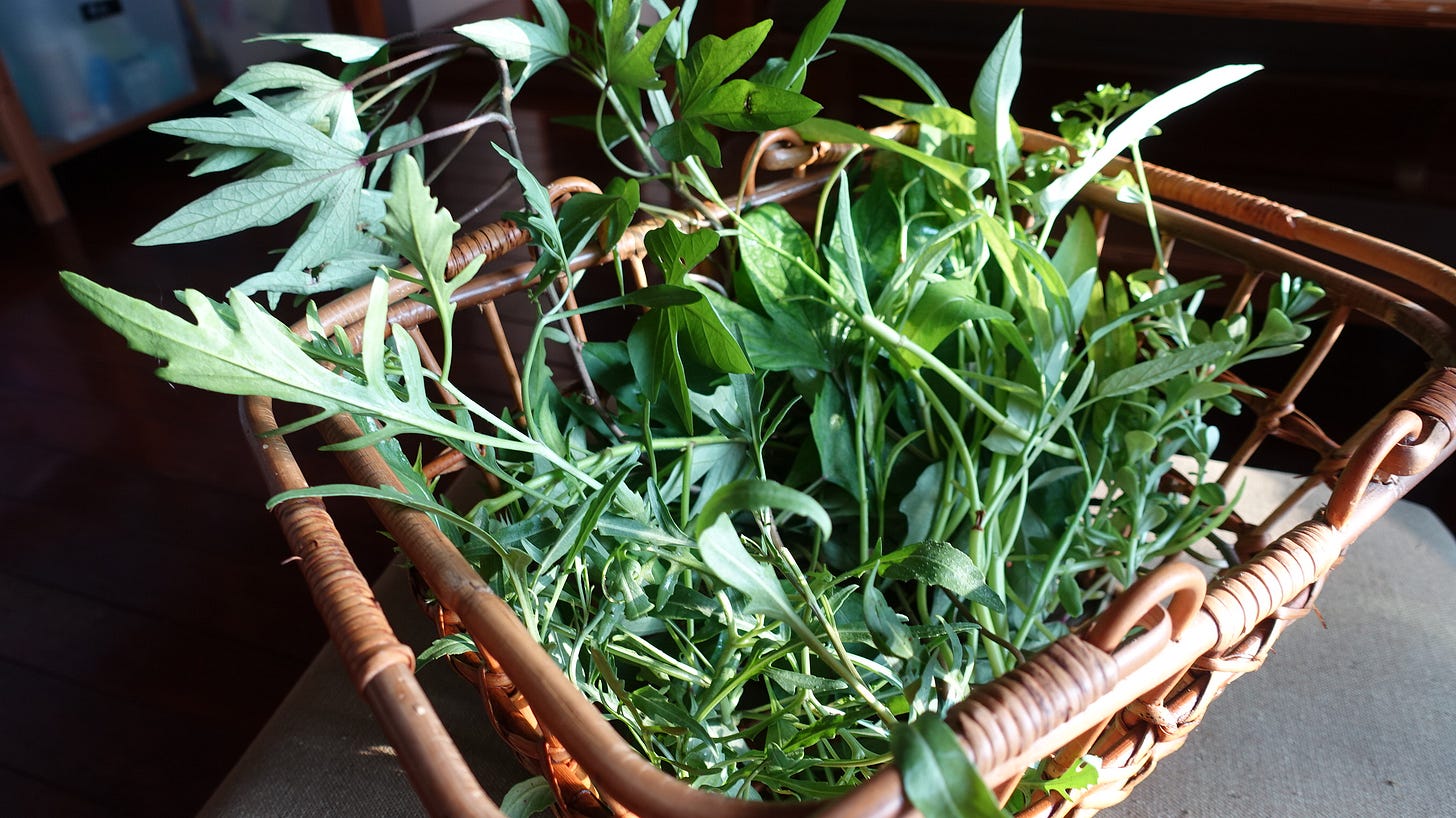 早上收一籃菜,做花園小沙拉。