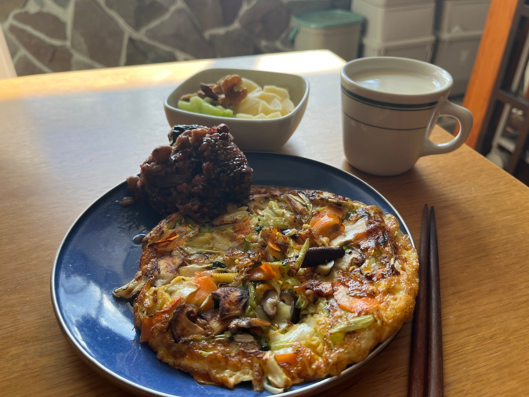 早上去市場買了新鮮的蔬菜,做成漂亮的一盤烘蛋。不管什麼蔬菜,加入奶油都變得超級美味啦。