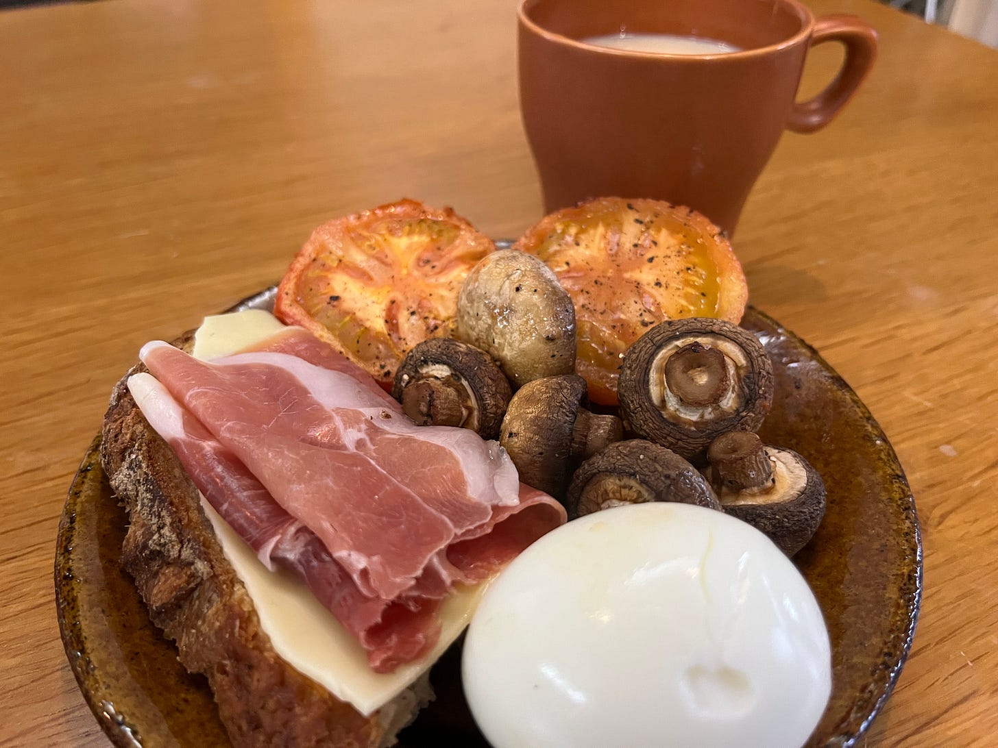 在境含家附近,有我大學時期喜歡的好多地方:南村小吃店、象山、加爾第、脆皮雞蛋糕。我們散步去莊敬路的珠寶盒,第一次買了各自的麵包和火腿。番茄切半,蘑菇洗過,鹽、胡椒、橄欖油,丟氣炸鍋,簡單到不行就有了風味濃郁的美味蔬菜。