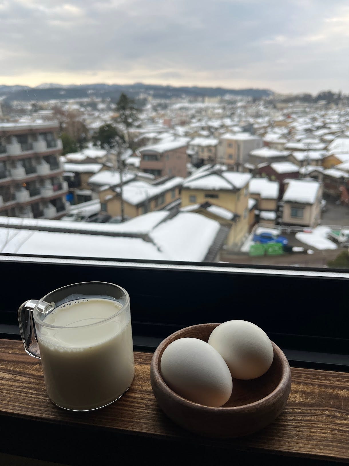 看著白色的雪景金澤,吃白色的早餐