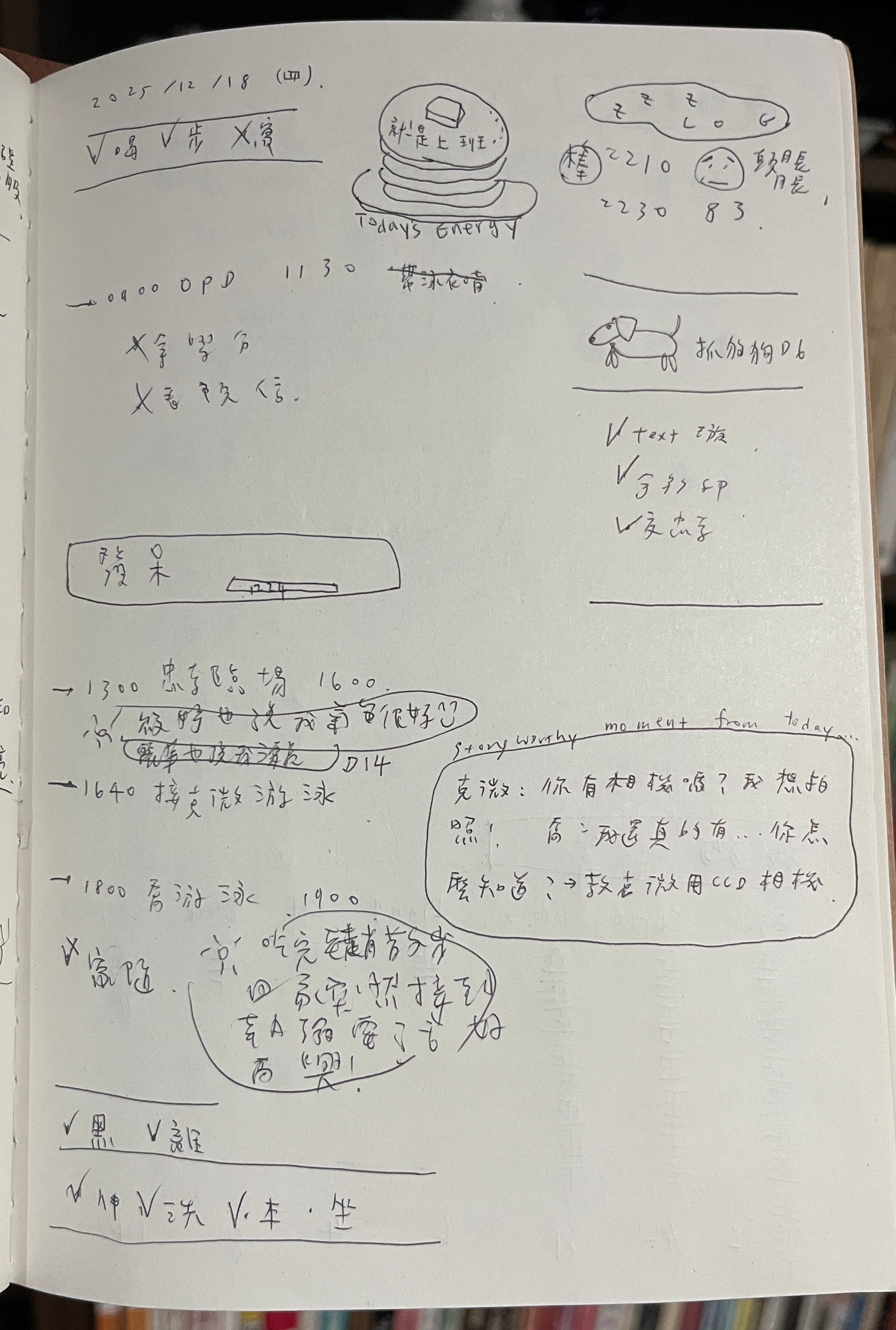 本。寫本本。在床上寫本本是我最愛的時光!!把今天的帳騰到本本上。寫寫今天好玩、好笑的事情。看一下明天長怎樣。把腦中想到的待辦事項丟出來清空。最近還有 storyworthy 的作業也很好玩。還有當然要把今天的「伸洗本坐」一個一個打勾。